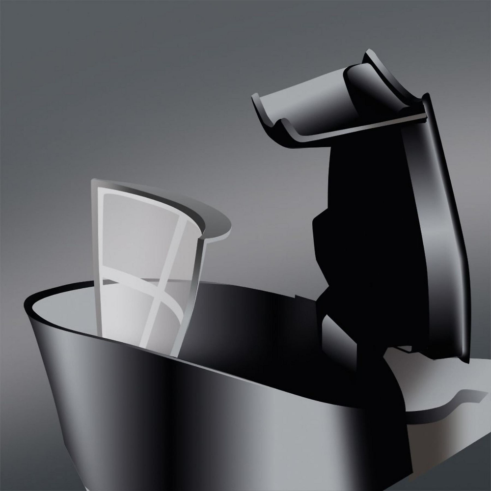 Espacio de almacenamiento para el cable, Fácil de limpiar, Filtro de caliza lavable, Piloto de luz para encender y apagar (en ambos lados) |