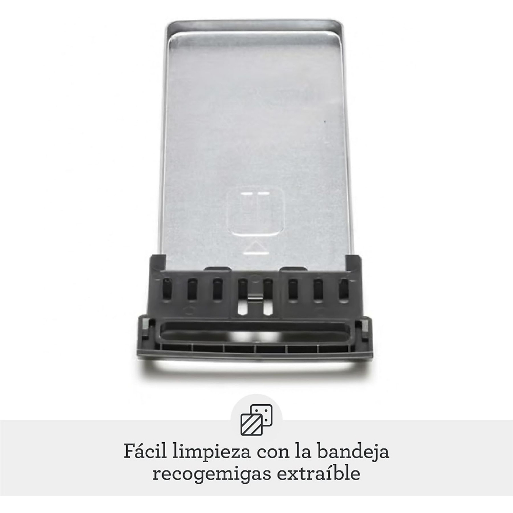 La Tostadora Eléctrica Sage STA825BAL2EEU1 cuenta con una potencia de 1000 W y presenta dos ranuras para el tostado de pan. Este modelo ofrece cinco niveles de tostado ajustables, lo que permite seleccionar diferentes grados de dorado. Fabricada en acero inoxidable, su diseño asegura una construcción sólida y duradera. Incorpora un botón para la función de cancelación, que permite detener el ciclo de tostado en cualquier momento. Este equipo incluye una bandeja recogemigas extraíble para facilitar la limpieza y mantener el área de trabajo ordenada. La tostadora está equipada con un control de temperatura que se ajusta automáticamente según el nivel seleccionado. Compatible con varios tipos de pan, esta tostadora permite el tostado uniforme gracias a sus elementos calefactores de alta eficiencia. Además, el dispositivo cuenta con un indicador luminoso que señala cuando el aparato está en funcionamiento. La Tostadora Eléctrica Sage STA825BAL2EEU1 se conecta a una fuente de alimentación estándar de 220-240 V, lo cual es adecuado para su uso en diversas ubicaciones.